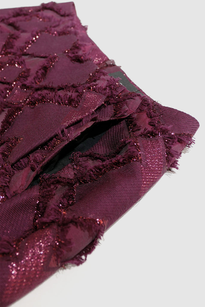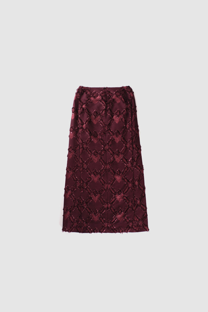 Our BONDING SKIRT SPARKLE LONG comes in a deep, Bordeaux red colour and features sparkling and fringe detailing. The design makes for a perfect skirt for festive days like Christmas!