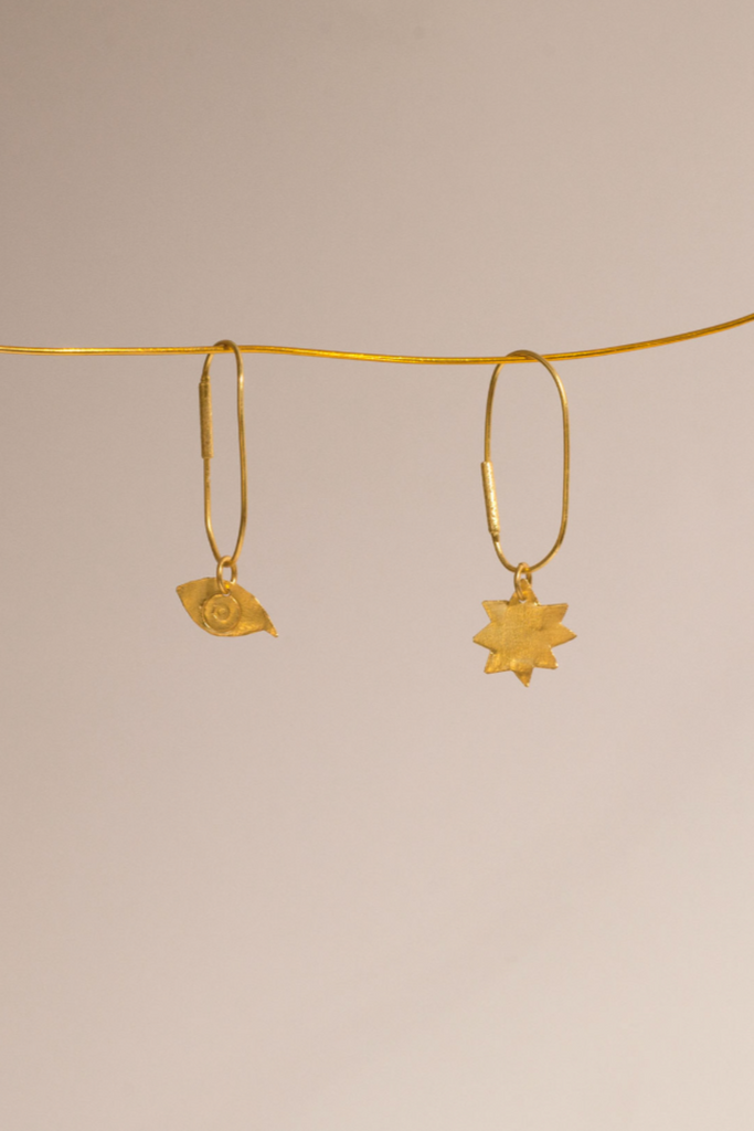 ECLIPSE EARRINGS are gold-plated jewelry born from the observation of different cultures and traditions. The unique forms and colors make for an eye catching accessory that fits any occasion.