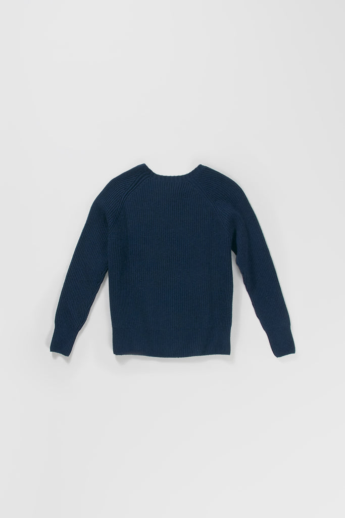 This navy blue knitted sweater is made out of a cashmere and merino wool mix, it is a staple piece in your wardrobe and will keep you warm and cosy all year around. Whether you pair it with your favourite Levi jeans or layer it over a colourful dress - The SETI SWEATER is for everyday! Rike is a size M and is wearing a size S.