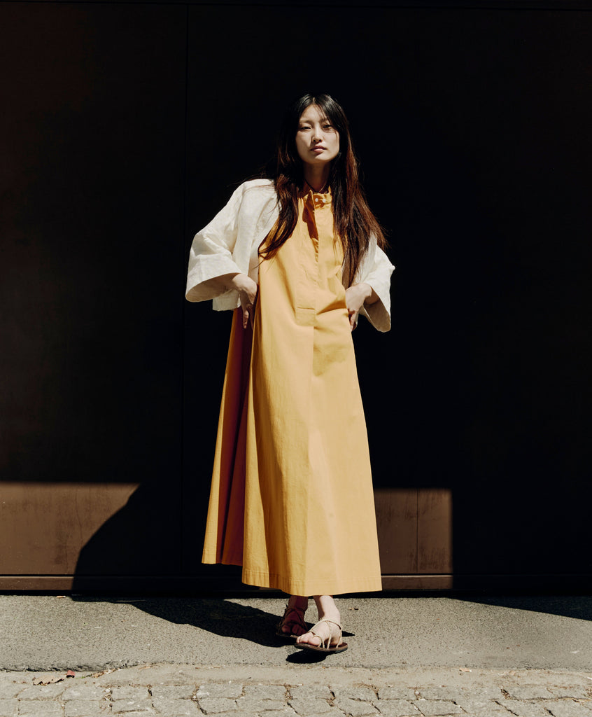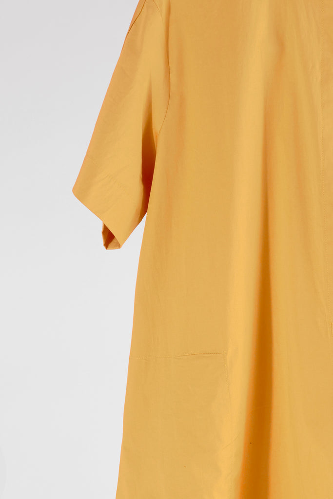 Oversized poplin dress, designed with a front fold and a button-down front. Offers a straight-cut silhouette and big side pockets. Comes as one size.