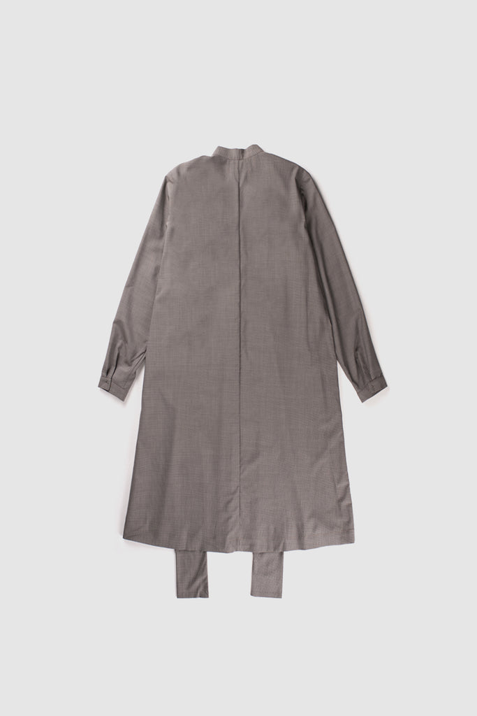 Our MINERAL DRESS LONG SLEEVE is made of Italian cashmere wool blend. This shirt dress has a long scarf around the shoulder allowing you to wear it as a belt or a ribbon. It also serves for an easy spring/autumn look completely unbuttoned as an inner or second layer.